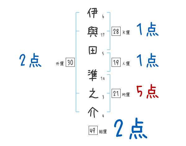 外運![]() | 伊與田準之介さんの外運は30画の2つ星!浮き沈みの激しさに注意しましょう。 生活面を象徴する運勢です。外部から受ける影響力を表し、結婚運、家庭運や職場、環境への順応性を表します。 |