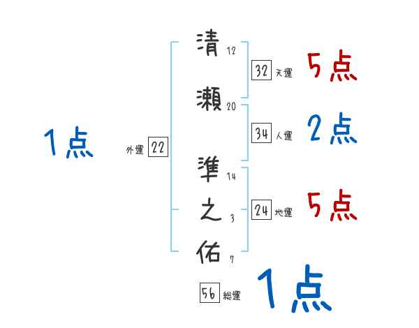 清瀬準之佑さんの画数の鑑定結果