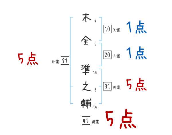 木全準之輔さんの画数の鑑定結果