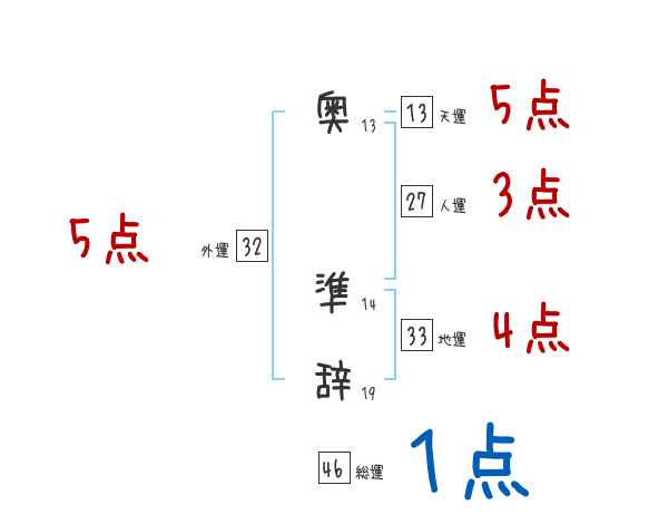 奥準辞さんの画数の鑑定結果