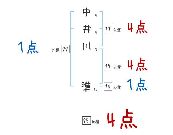 中井川準さんの画数の鑑定結果