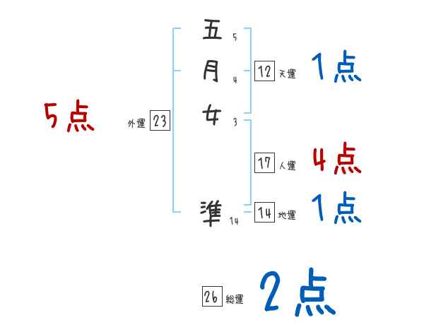 総運![]() | 五月女準さんの総運は26画の2つ星!波瀾万丈かも。信頼できる人を大事にしましょう。 あなたの人生を表す1番重要な運勢です。生涯を通じて影響する総合運となり、主に50歳以降の晩年期に影響を及ぼします。 |