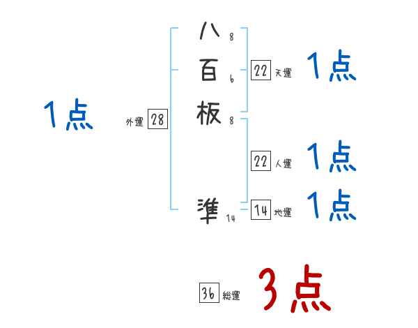 八百板準さんの画数の鑑定結果