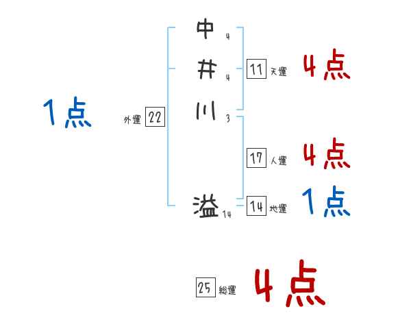 天運![]() | 中井川溢さんの天運は11画の4つ星!着実に富や地位を得る幸運な人生。 家系が持つ宿命的な運勢を表します。祖先から受け継いだ苗字ですので自分の力が及びません。家柄を象徴します。 |