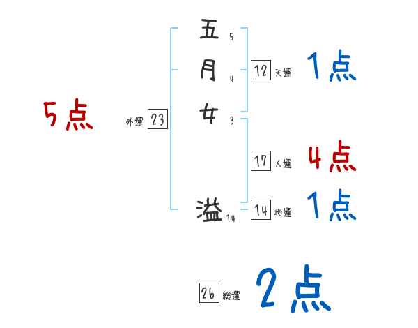 五月女溢さんの画数の鑑定結果