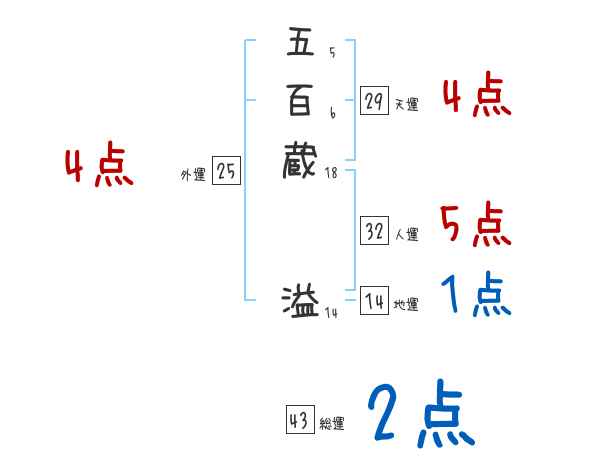 五百蔵溢さんの画数の鑑定結果
