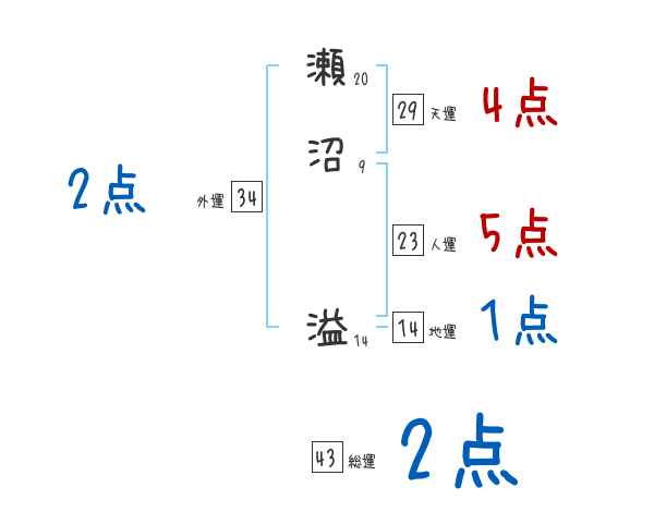 瀬沼溢さんの画数の鑑定結果