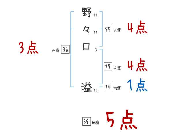 野々口溢さんの画数の鑑定結果