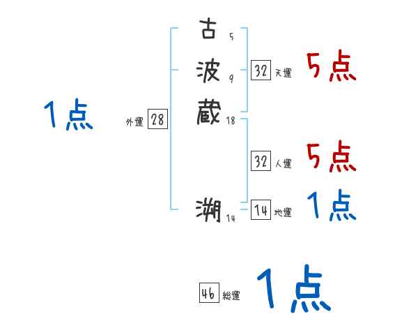 天運![]() | 古波蔵溯さんの天運は32画の5つ星!柔軟性があり成功する。チャンスが多く金運が良い。 家系が持つ宿命的な運勢を表します。祖先から受け継いだ苗字ですので自分の力が及びません。家柄を象徴します。 |