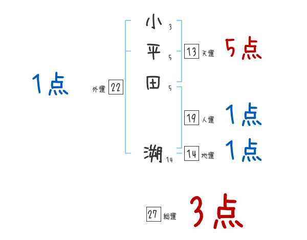 天運![]() | 小平田溯さんの天運は13画の5つ星!才能に恵まれ人気がある。名声を手に入れる。円満な人生。 家系が持つ宿命的な運勢を表します。祖先から受け継いだ苗字ですので自分の力が及びません。家柄を象徴します。 |