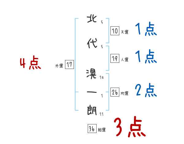 外運![]() | 北代滉一朗さんの外運は17画の4つ星!積極的な行動力。地位を気づき財産を手に入れる。純粋な心と直感力。 生活面を象徴する運勢です。外部から受ける影響力を表し、結婚運、家庭運や職場、環境への順応性を表します。 |