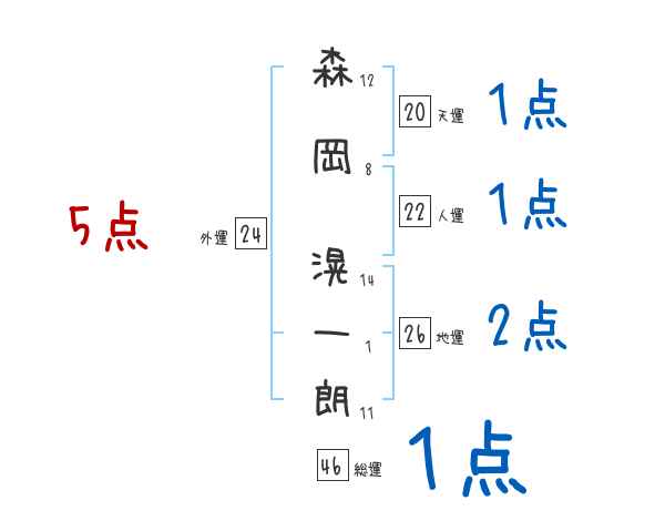 森岡滉一朗さんの画数の鑑定結果
