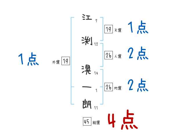 地運![]() | 江渕滉一朗さんの地運は26画の2つ星!波瀾万丈かも。信頼できる人を大事にしましょう。 個性を表す基礎的な運勢です。性格形成や対人関係、行動力など家庭環境に影響されます。主に誕生してから20歳くらいまでの若年期の運勢を表します。 |