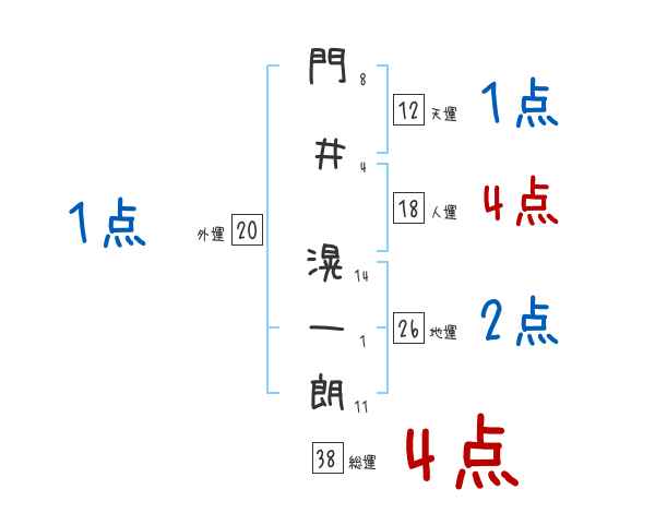 天運![]() | 門井滉一朗さんの天運は12画の1つ星!簡単な失敗で諦めてしまいやすいかも。着実に行動すると良いでしょう。 家系が持つ宿命的な運勢を表します。祖先から受け継いだ苗字ですので自分の力が及びません。家柄を象徴します。 |