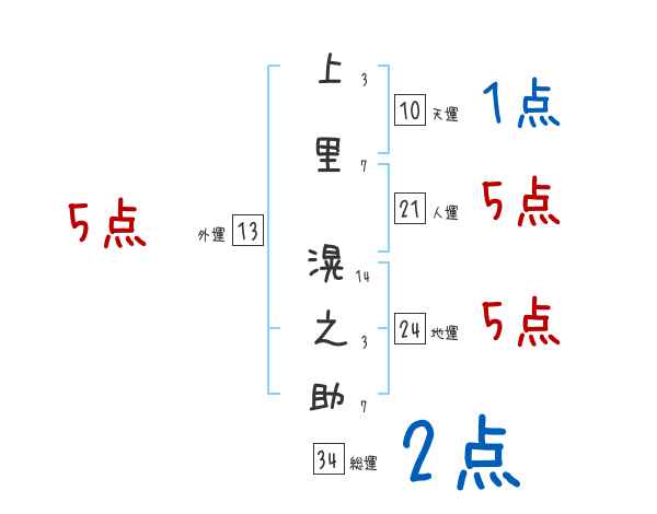 上里滉之助さんの画数の鑑定結果