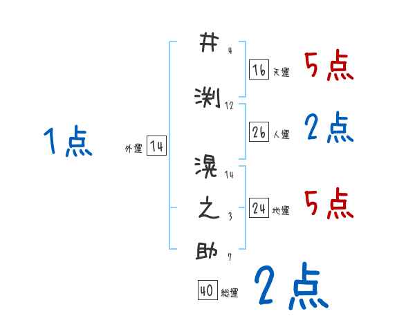 井渕滉之助さんの画数の鑑定結果