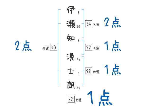 伊瀬知滉士朗さんの画数の鑑定結果