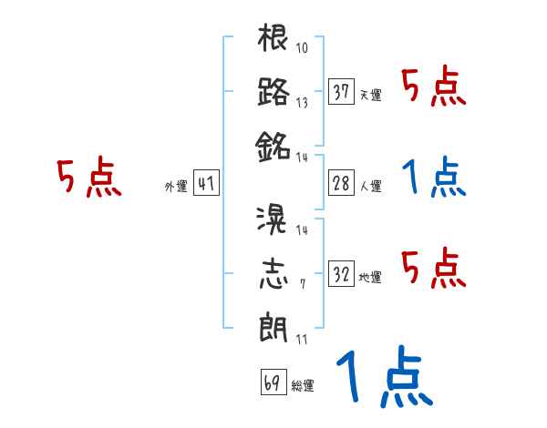 地運![]() | 根路銘滉志朗さんの地運は32画の5つ星!柔軟性があり成功する。チャンスが多く金運が良い。 個性を表す基礎的な運勢です。性格形成や対人関係、行動力など家庭環境に影響されます。主に誕生してから20歳くらいまでの若年期の運勢を表します。 |