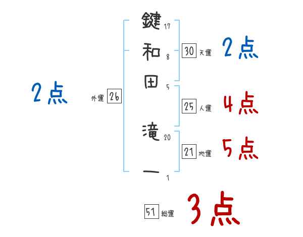 鍵和田滝一さんの画数の鑑定結果