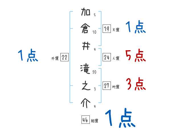 加倉井滝之介さんの画数の鑑定結果