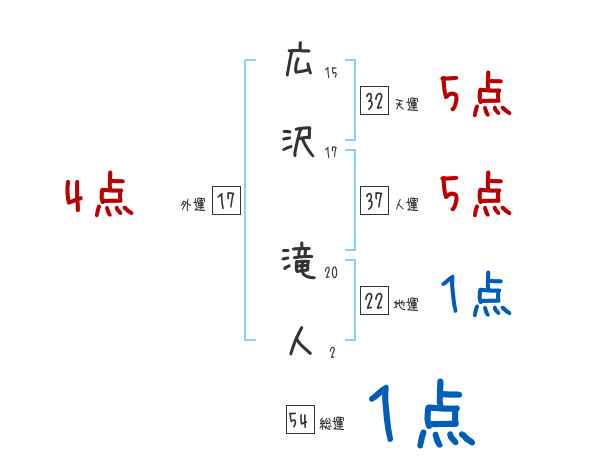 広沢滝人さんの画数の鑑定結果
