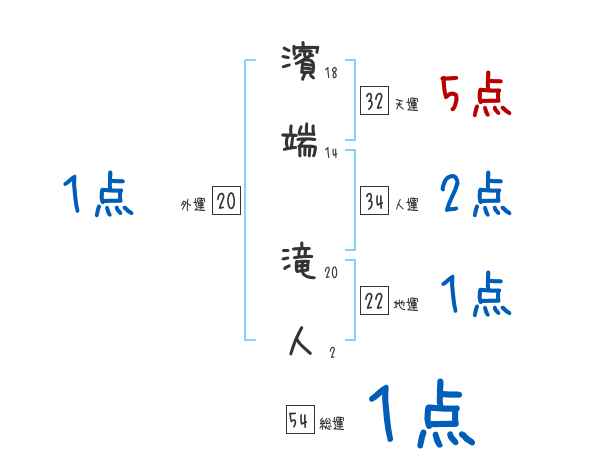 濱端滝人さんの画数の鑑定結果
