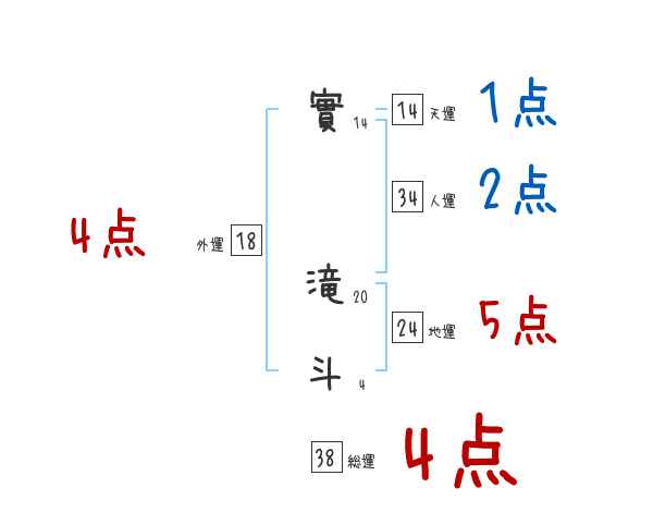 外運![]() | 實滝斗さんの外運は18画の4つ星!情熱的で剛気。忍耐力があり信頼される。 生活面を象徴する運勢です。外部から受ける影響力を表し、結婚運、家庭運や職場、環境への順応性を表します。 |