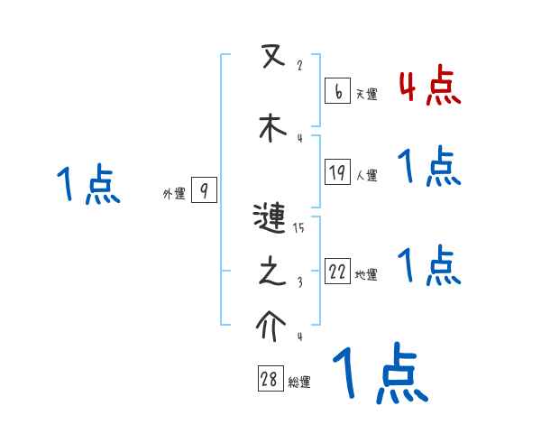 総運![]() | 又木漣之介さんの総運は28画の1つ星!家庭環境に注意。スポーツで活躍できる能力があるかも。 あなたの人生を表す1番重要な運勢です。生涯を通じて影響する総合運となり、主に50歳以降の晩年期に影響を及ぼします。 |