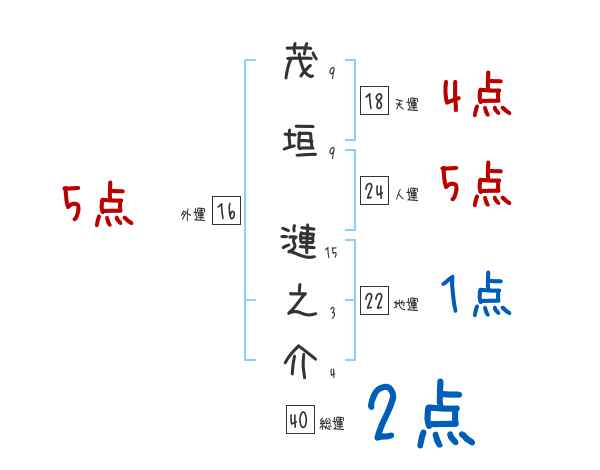 茂垣漣之介さんの画数の鑑定結果