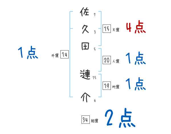 佐久田漣介さんの画数の鑑定結果