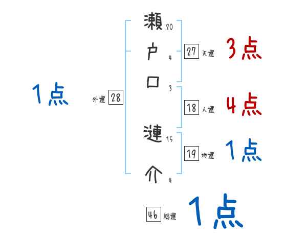 瀬戸口漣介さんの画数の鑑定結果