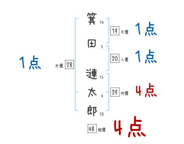 外運![]() | 箕田漣太郎さんの外運は28画の1つ星!家庭環境に注意。スポーツで活躍できる能力があるかも。 生活面を象徴する運勢です。外部から受ける影響力を表し、結婚運、家庭運や職場、環境への順応性を表します。 |