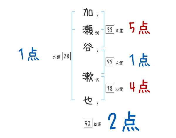 加瀬谷漱也さんの画数の鑑定結果