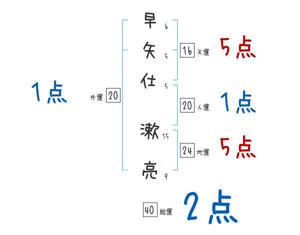 早矢仕漱亮さんの画数の鑑定結果