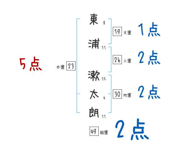 東浦漱太朗さんの画数の鑑定結果