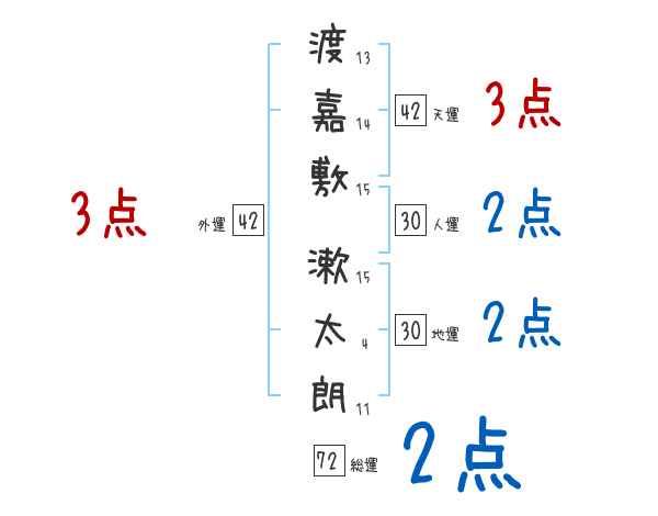 渡嘉敷漱太朗さんの画数の鑑定結果