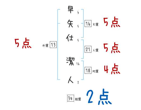 早矢仕潔人さんの画数の鑑定結果