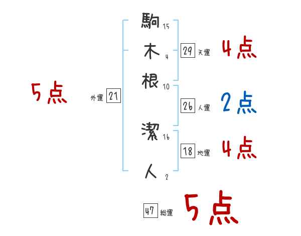 駒木根潔人さんの画数の鑑定結果
