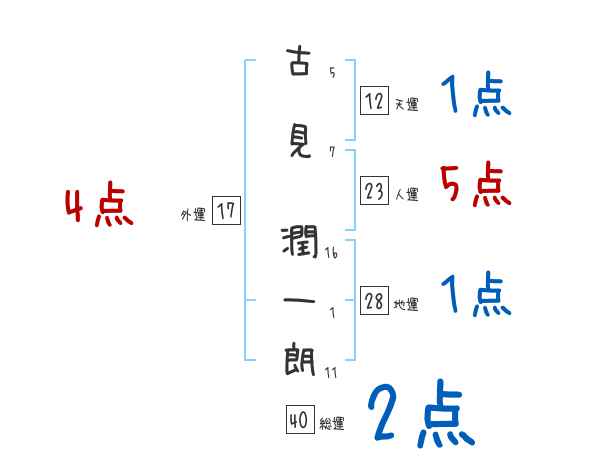 古見潤一朗さんの画数の鑑定結果