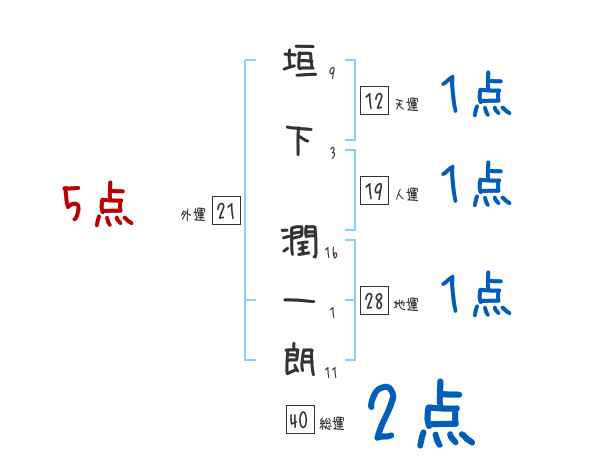 垣下潤一朗さんの画数の鑑定結果