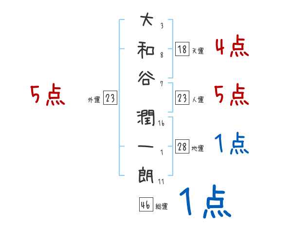 大和谷潤一朗さんの画数の鑑定結果