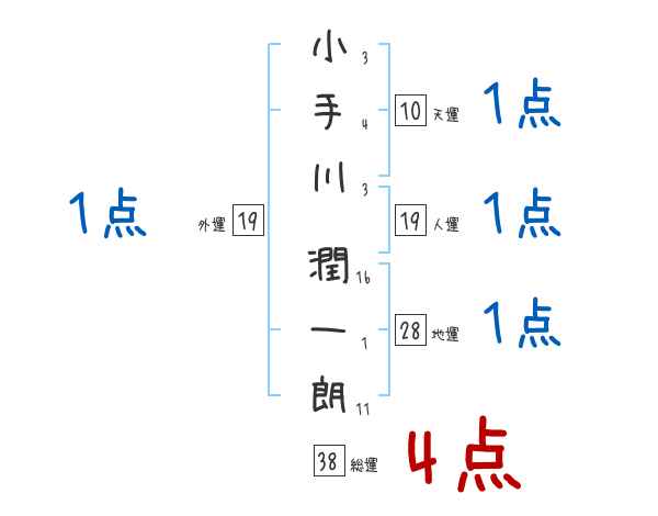 小手川潤一朗さんの画数の鑑定結果