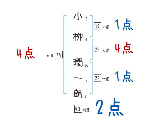 外運![]() | 小栁潤一朗さんの外運は15画の4つ星!人徳があり出世する。順調に物事を進め円満な人生。 生活面を象徴する運勢です。外部から受ける影響力を表し、結婚運、家庭運や職場、環境への順応性を表します。 |