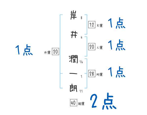総運![]() | 岸井潤一朗さんの総運は40画の2つ星!自信過剰で物事に固執するためトラブルに注意。 あなたの人生を表す1番重要な運勢です。生涯を通じて影響する総合運となり、主に50歳以降の晩年期に影響を及ぼします。 |