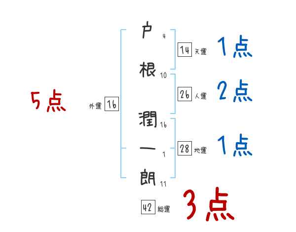 戸根潤一朗さんの画数の鑑定結果