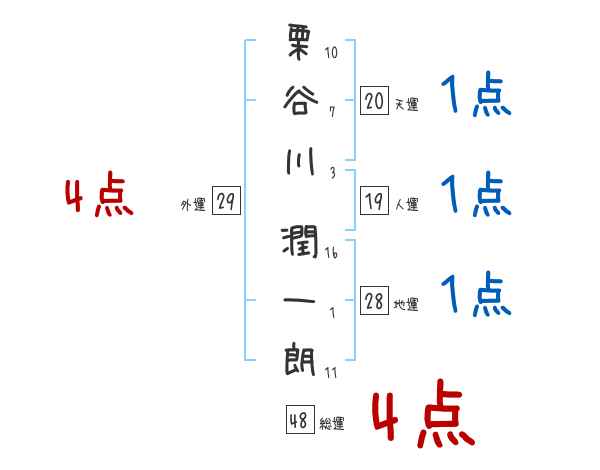 栗谷川潤一朗さんの画数の鑑定結果