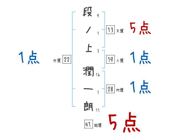 天運![]() | 段ノ上潤一朗さんの天運は13画の5つ星!才能に恵まれ人気がある。名声を手に入れる。円満な人生。 家系が持つ宿命的な運勢を表します。祖先から受け継いだ苗字ですので自分の力が及びません。家柄を象徴します。 |