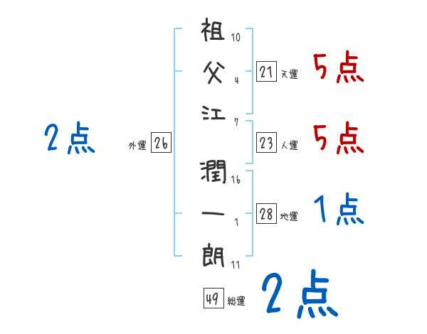 祖父江潤一朗さんの画数の鑑定結果