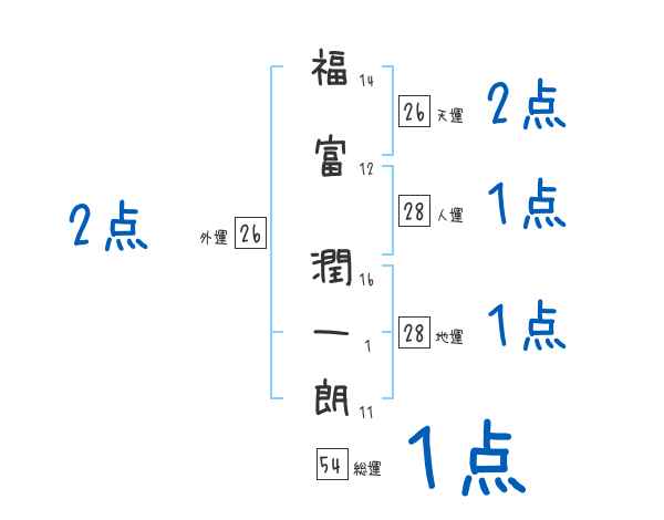 福富潤一朗さんの画数の鑑定結果