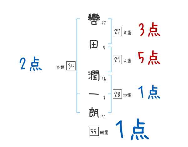 轡田潤一朗さんの画数の鑑定結果